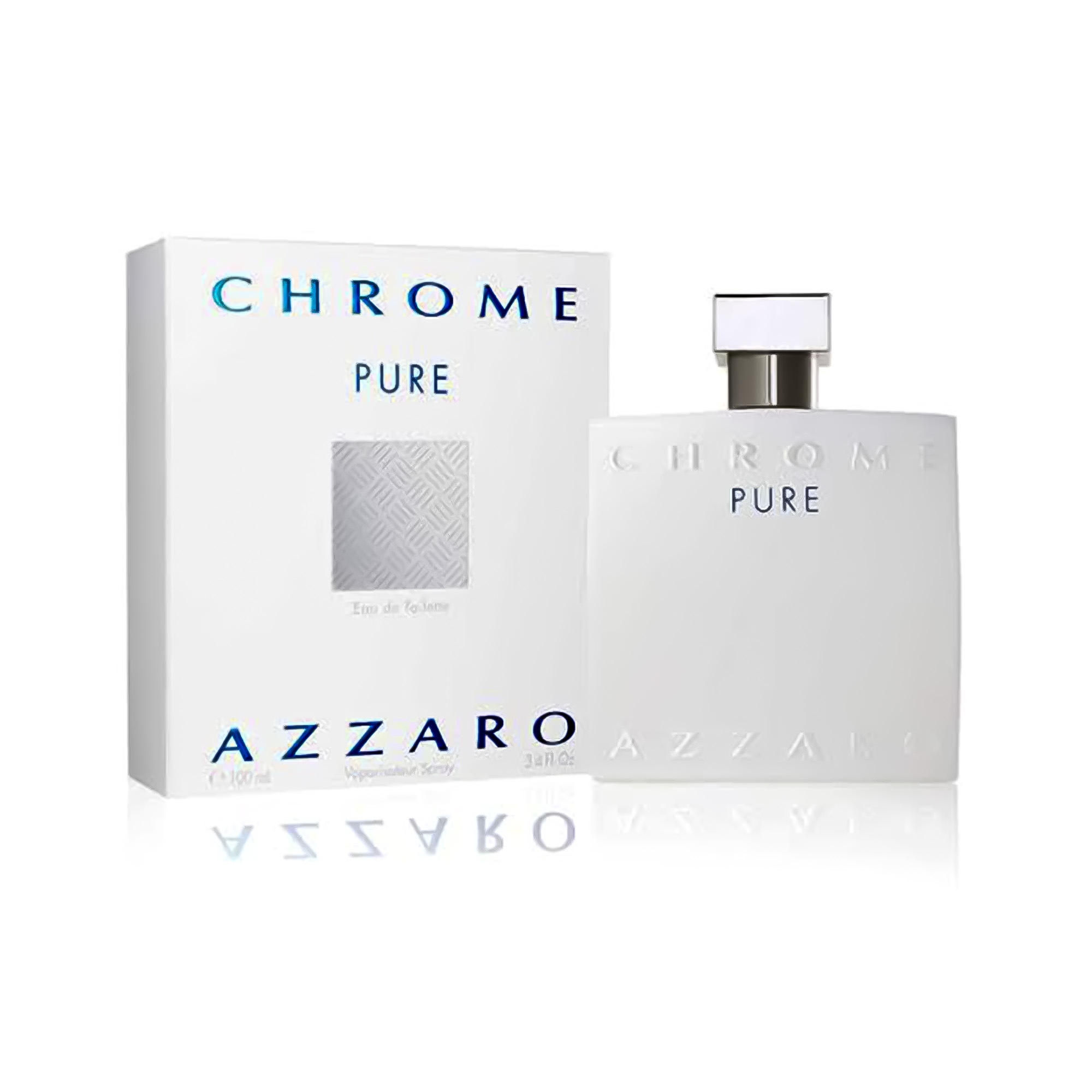 Chrome Pure Azzaro عطر حمضيات – أروماتك للرجال . Chrome Pure صدر عام 2017. Chrome Pure من توقيع Jacques Huclier و Olivier Pescheux. إفتتاحية العطر الماندرين (اليوسفي) و البرغموت; قلب العطر رائحه الماء, زهر البرتقال و أكيغالاوود; قاعدة العطر تتكون من حبوب التونكا, عشب المتة, المسك الأبيض و خشب الأرز.