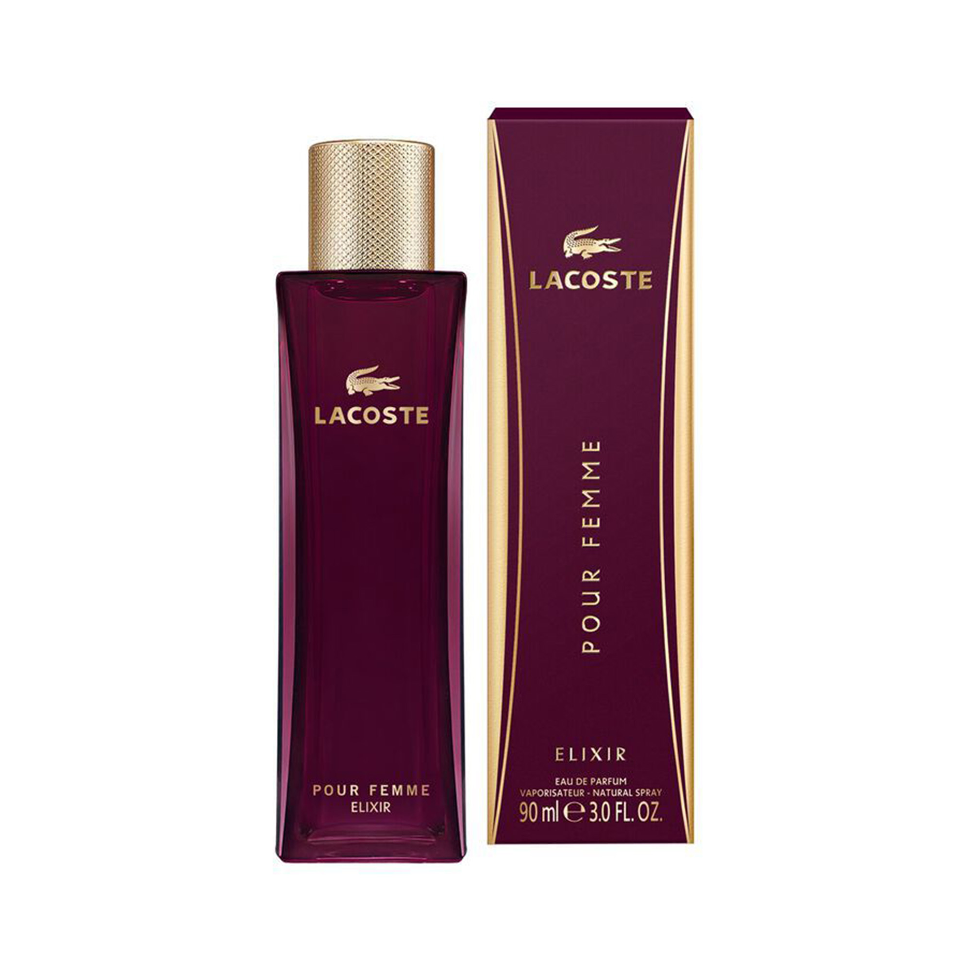 Lacoste Pour Femme Elixir Lacoste Fragrances عطر تشيبر – زهري للنساء . Lacoste Pour Femme Elixir صدر عام 2019. Olivier Cresp قام بتوقيع هذا العطر. إفتتاحية العطر الفلفل الوردي, الياسمين و الماندرين (اليوسفي); قلب العطر الهيلوتروب, الغاردينيا و الياسمين; قاعدة العطر تتكون من الفانيليا, الأمبروكسان, مسك الروم, خشب الأرز, نجيل الهند و الباتشولي.